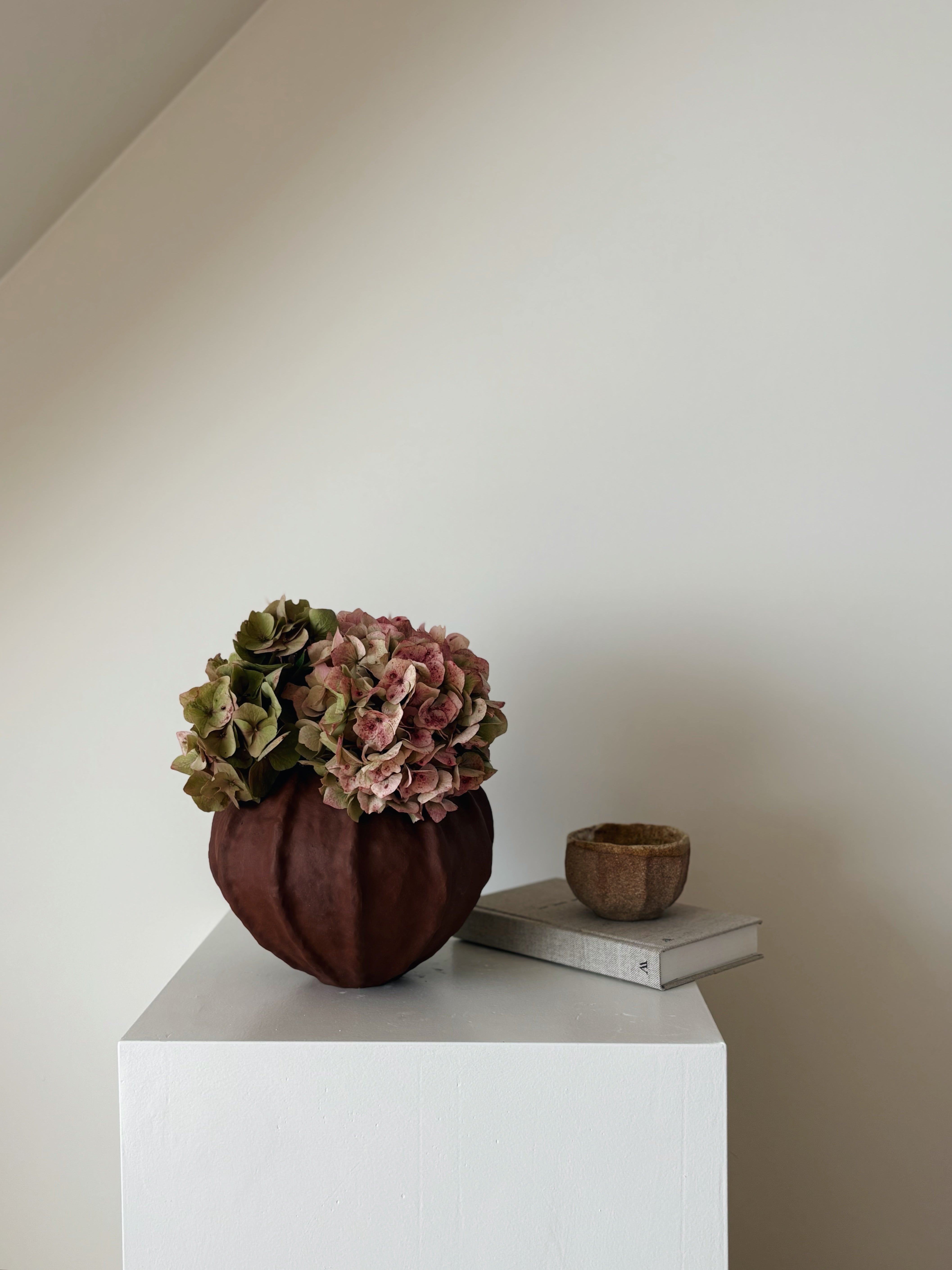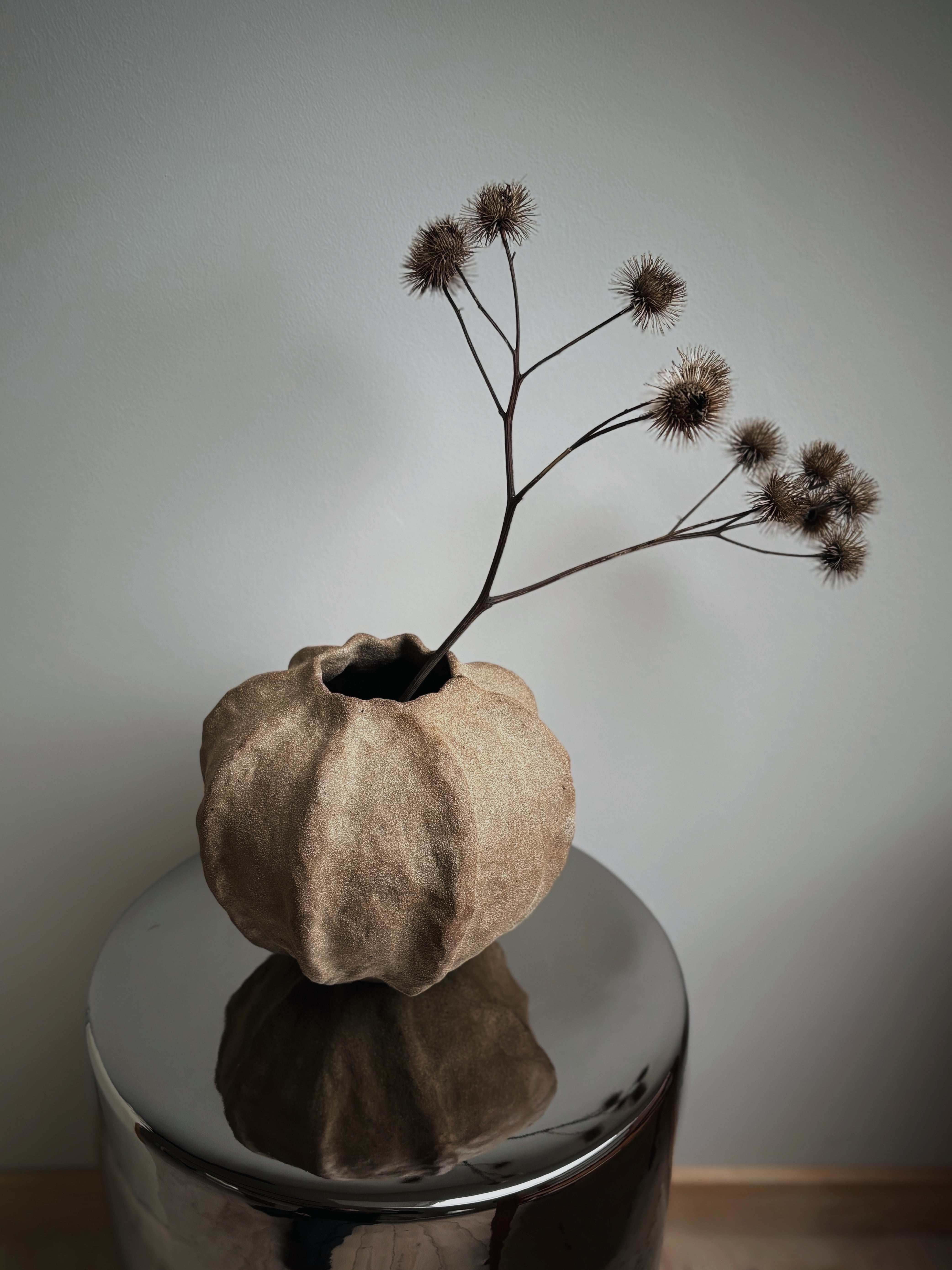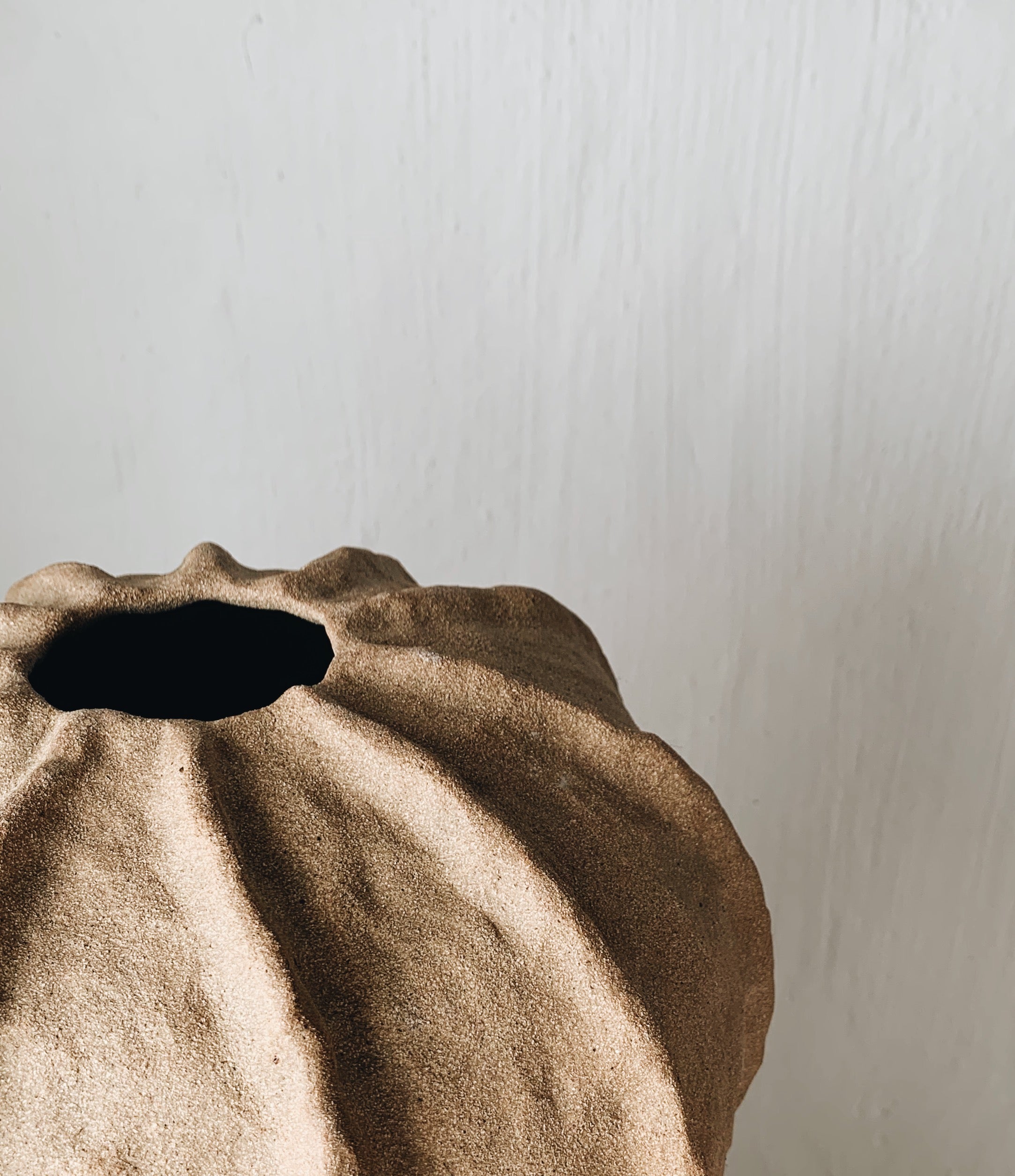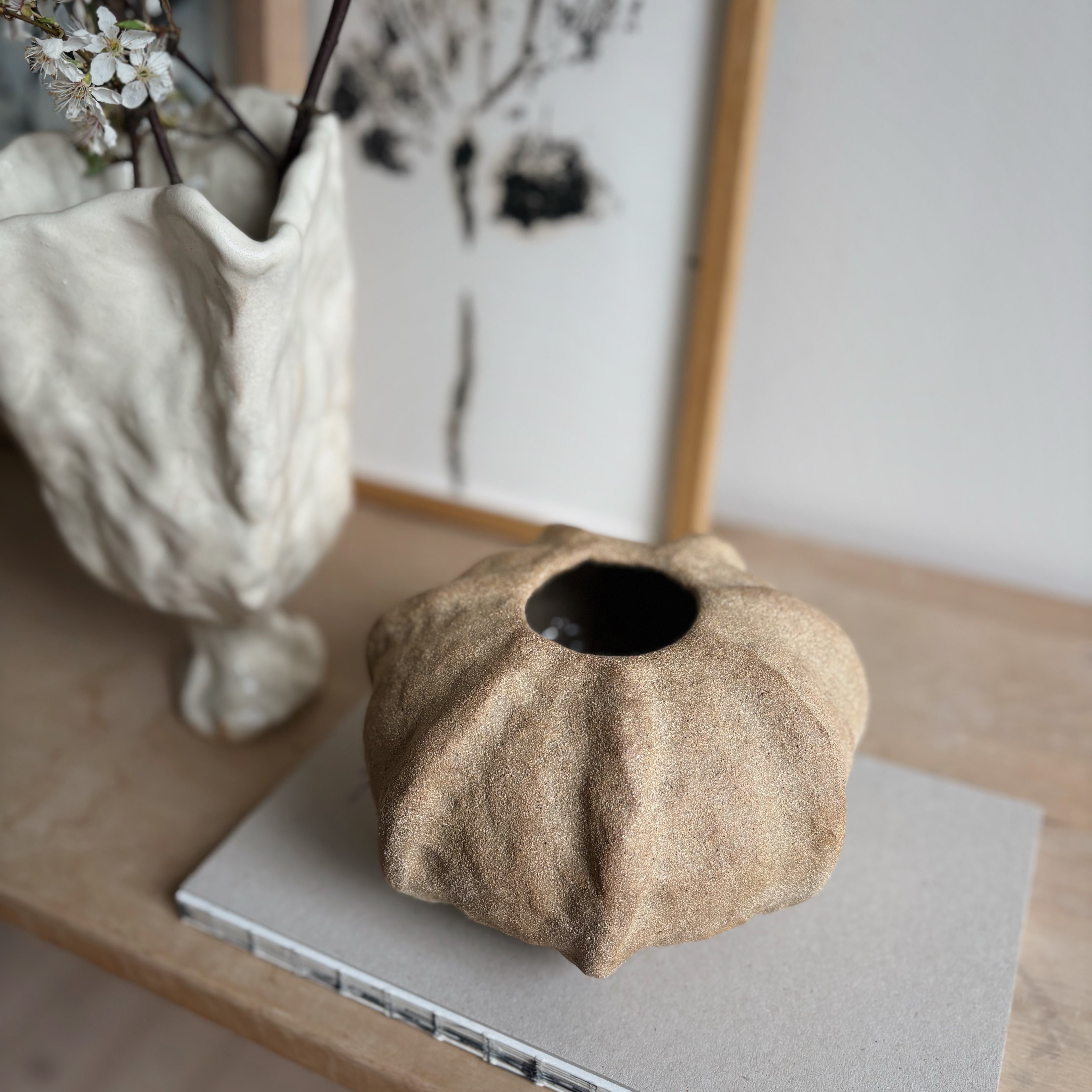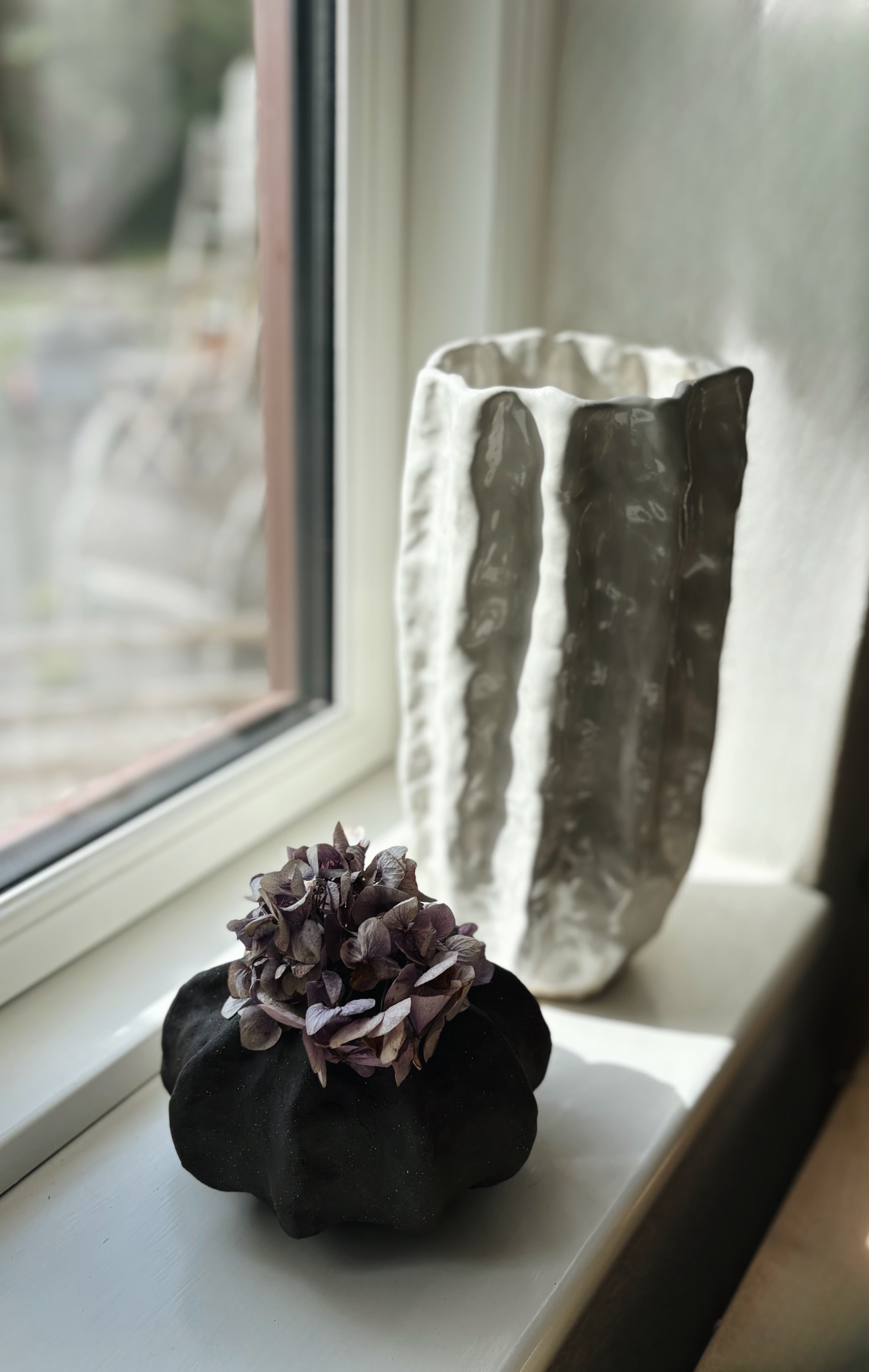 Det håndbyggede ler minder os om værdien af det unikke, det sanselige og det menneskeskabte. Hver vase bærer spor af hænder, der har formet den med omhu – en fortælling i form, tekstur og nærvær.