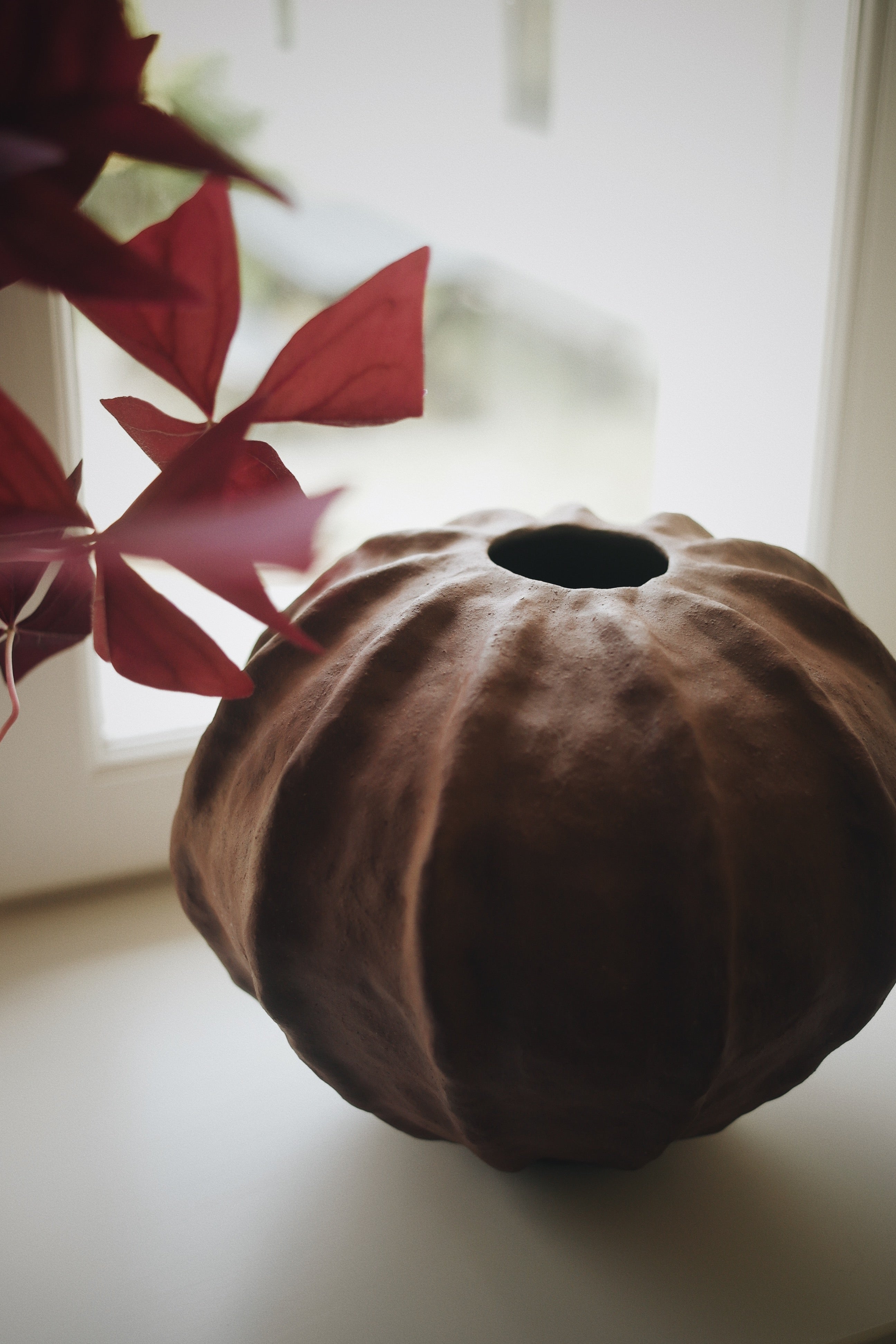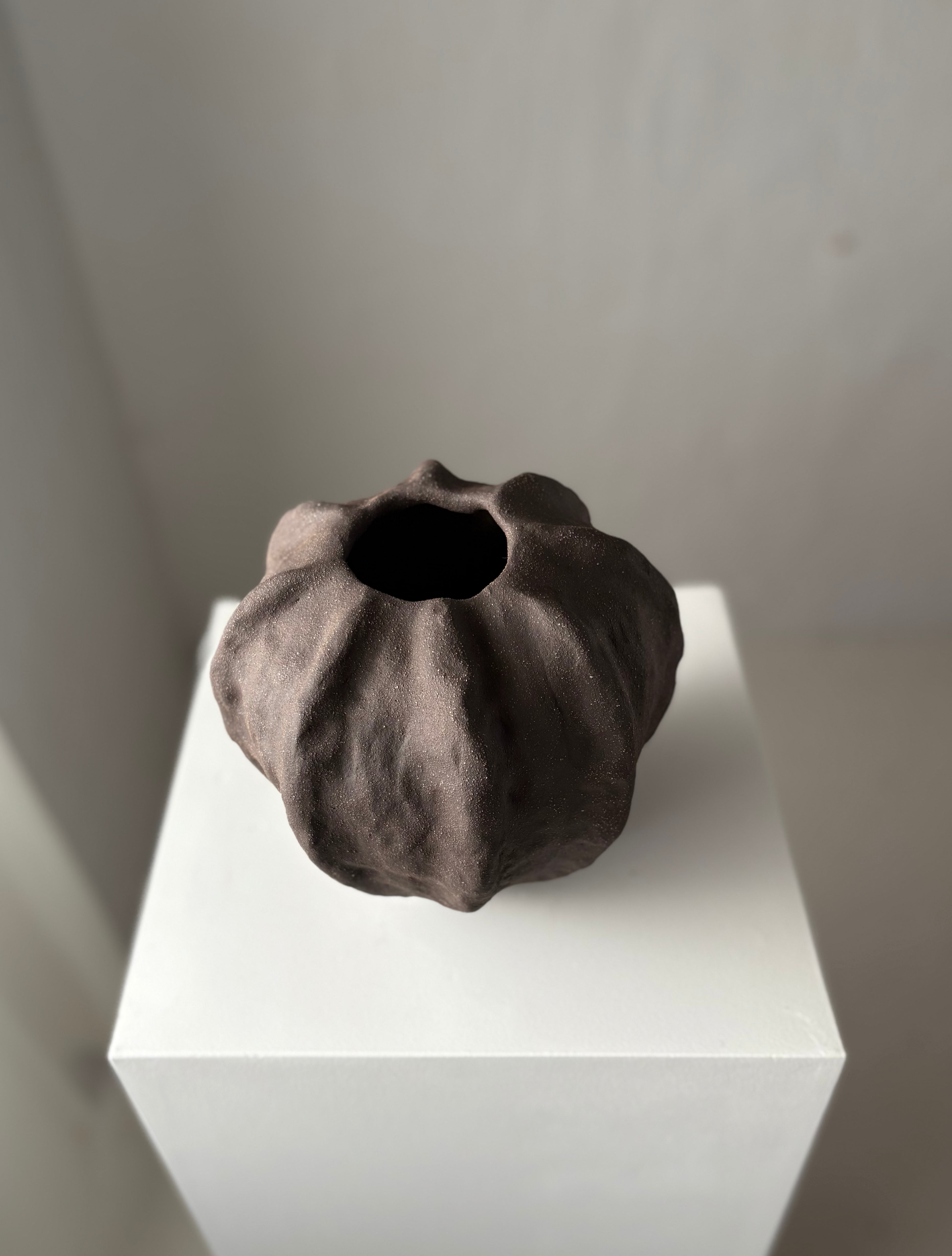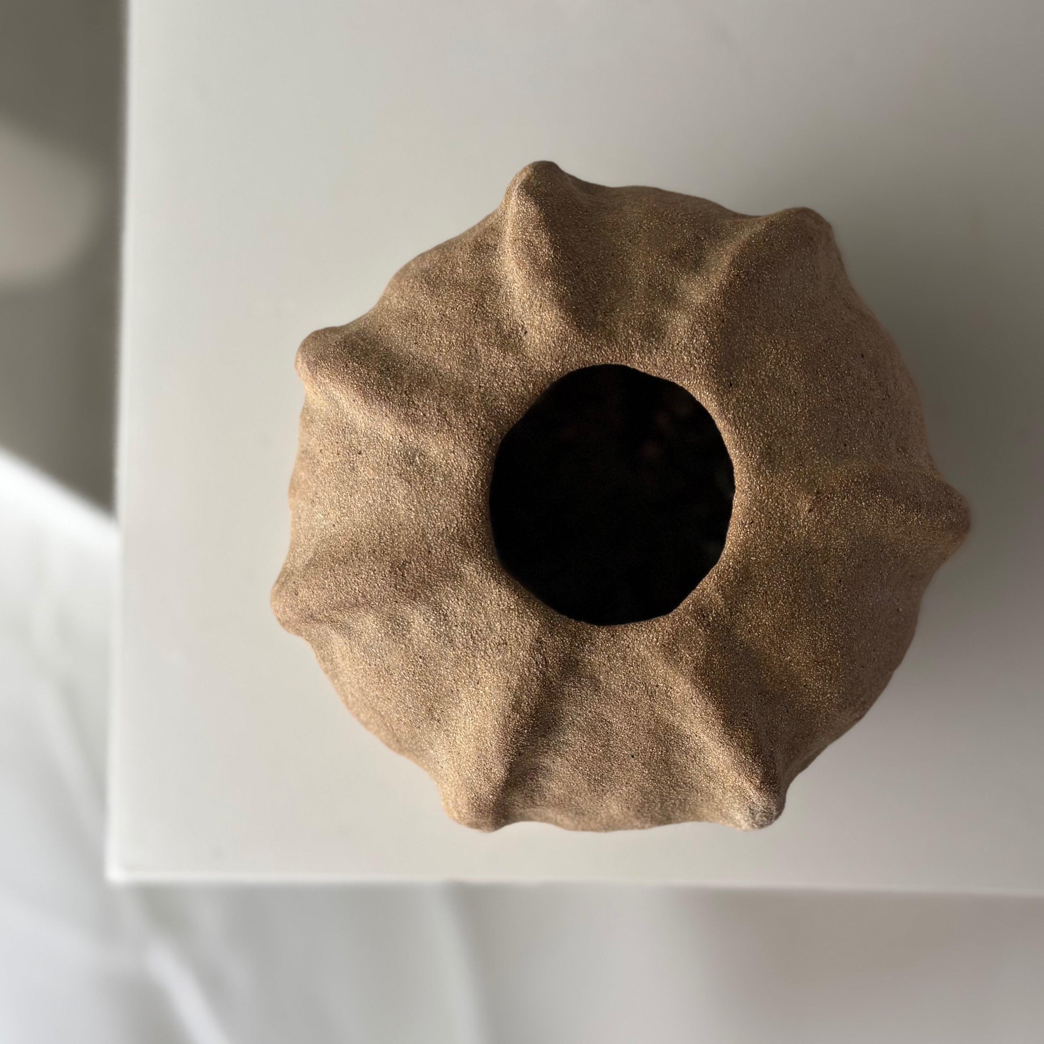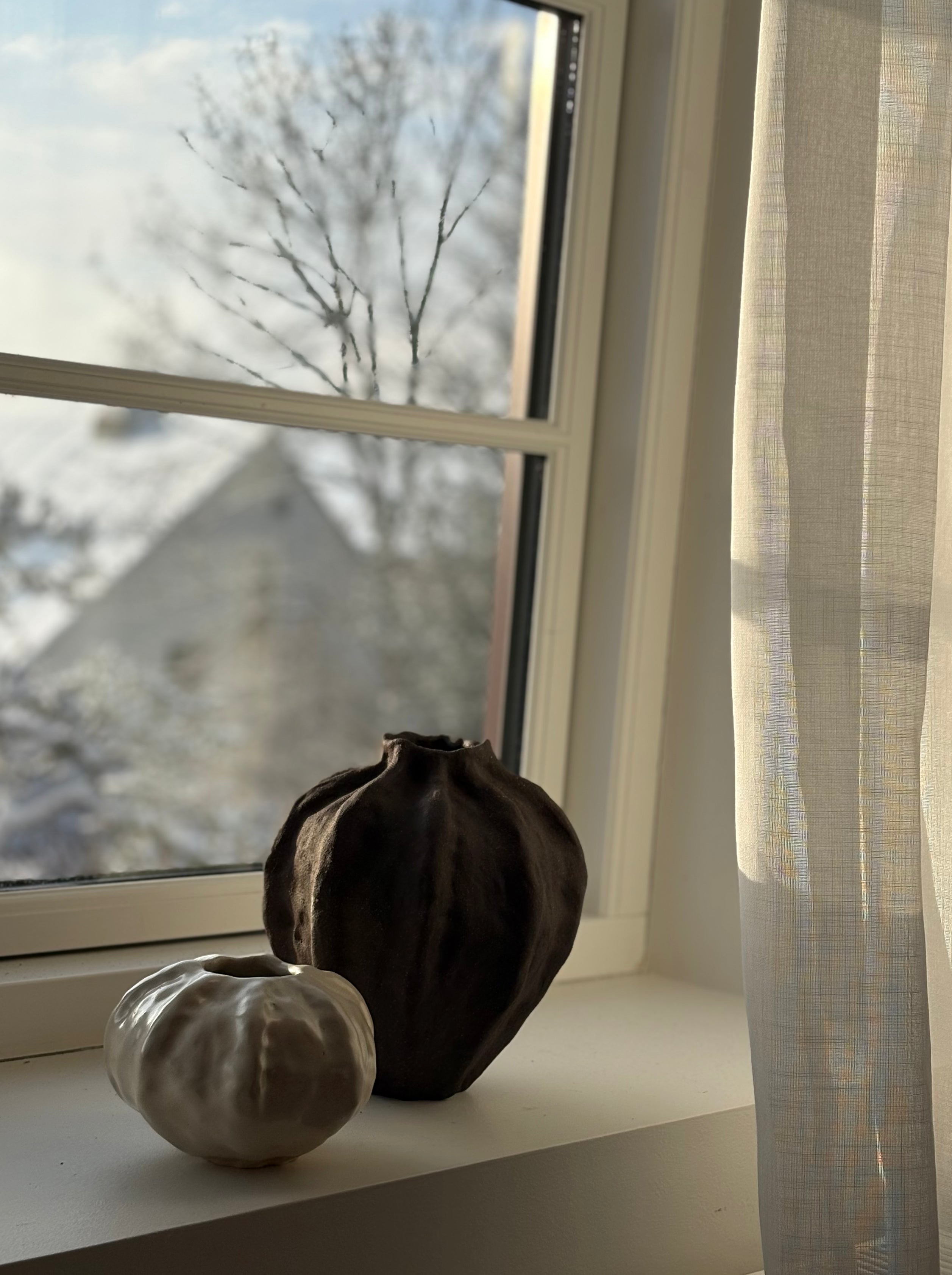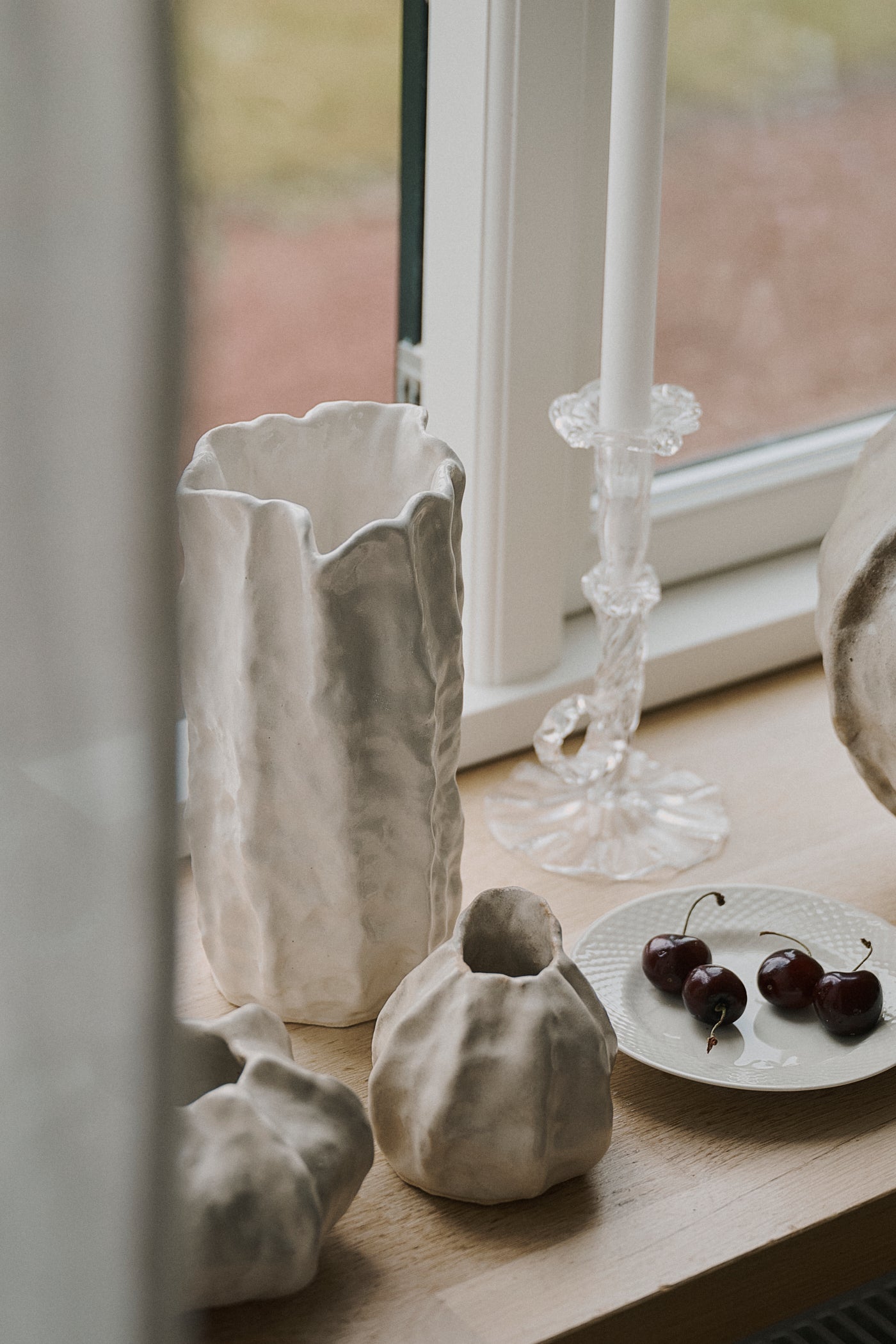 Min tilgang til leret er intuitivt og meditativt. Hver enkelt vase afslører mine hændes aftryk - det vækker dine sanser og bringer nærhed i rummet.