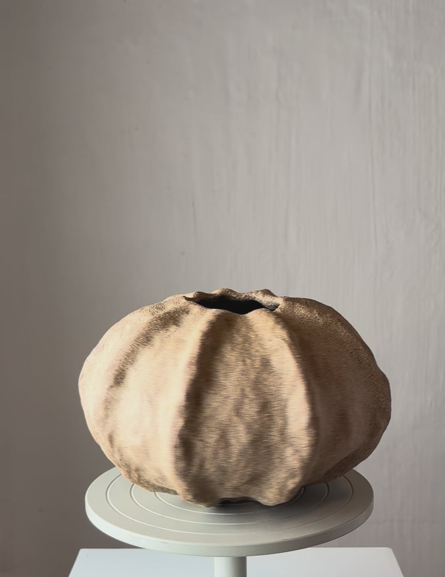 Min tilgang til leret er intuitivt og meditativt. Hver enkelt vase afslører mine hændes aftryk - det vækker dine sanser og bringer nærhed i rummet.