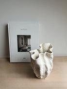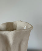 Håndbygget skulpturel unika vase i hvidler, af Leela Mette. Vasen er uglaseret hvilket skaber både liv, dybde og tekstur.