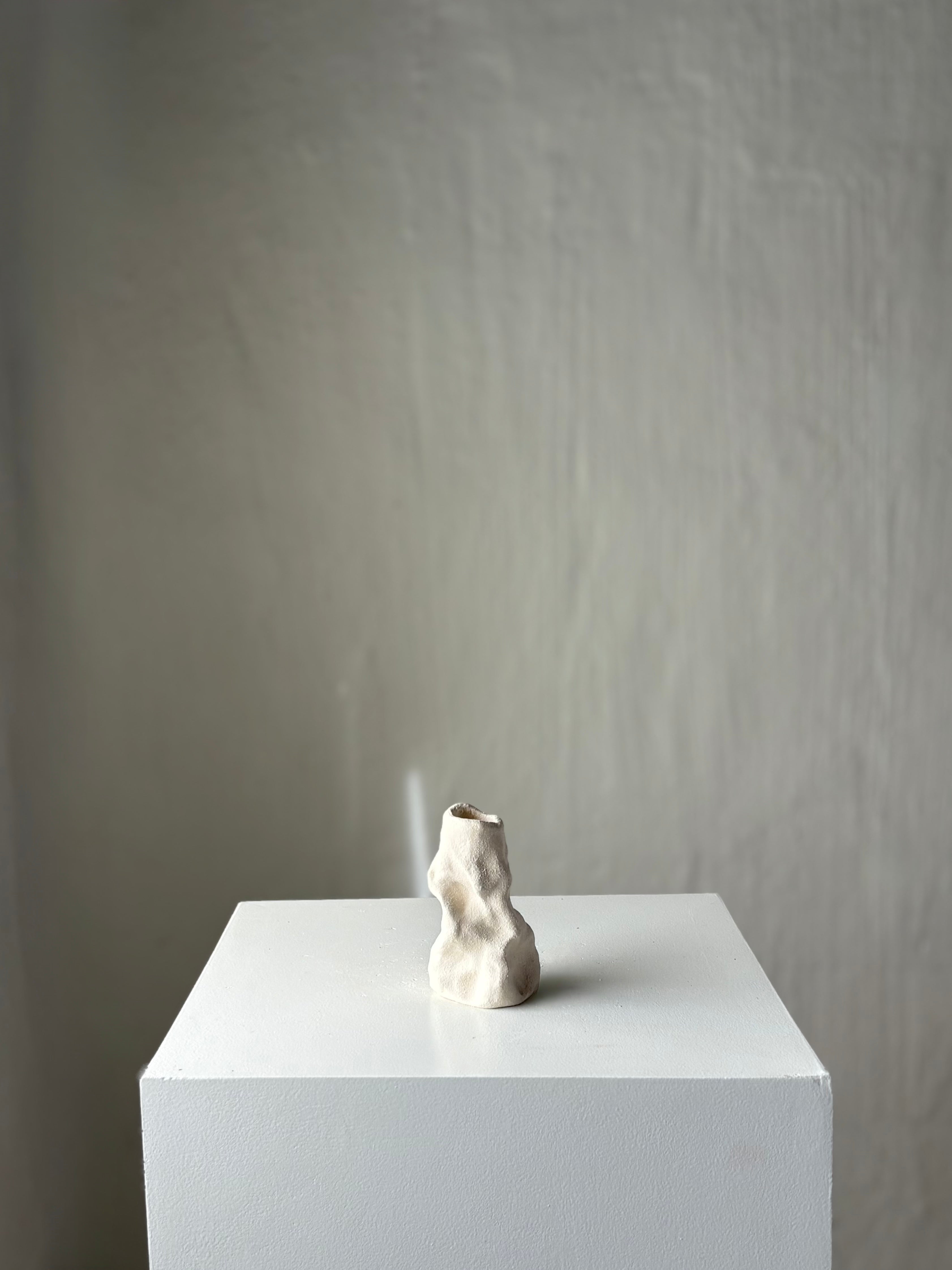 Håndbygget skulpturel unika lysestage i hvidler, af Leela Mette. Stagen er uglaseret hvilket skaber både liv, dybde og tekstur.