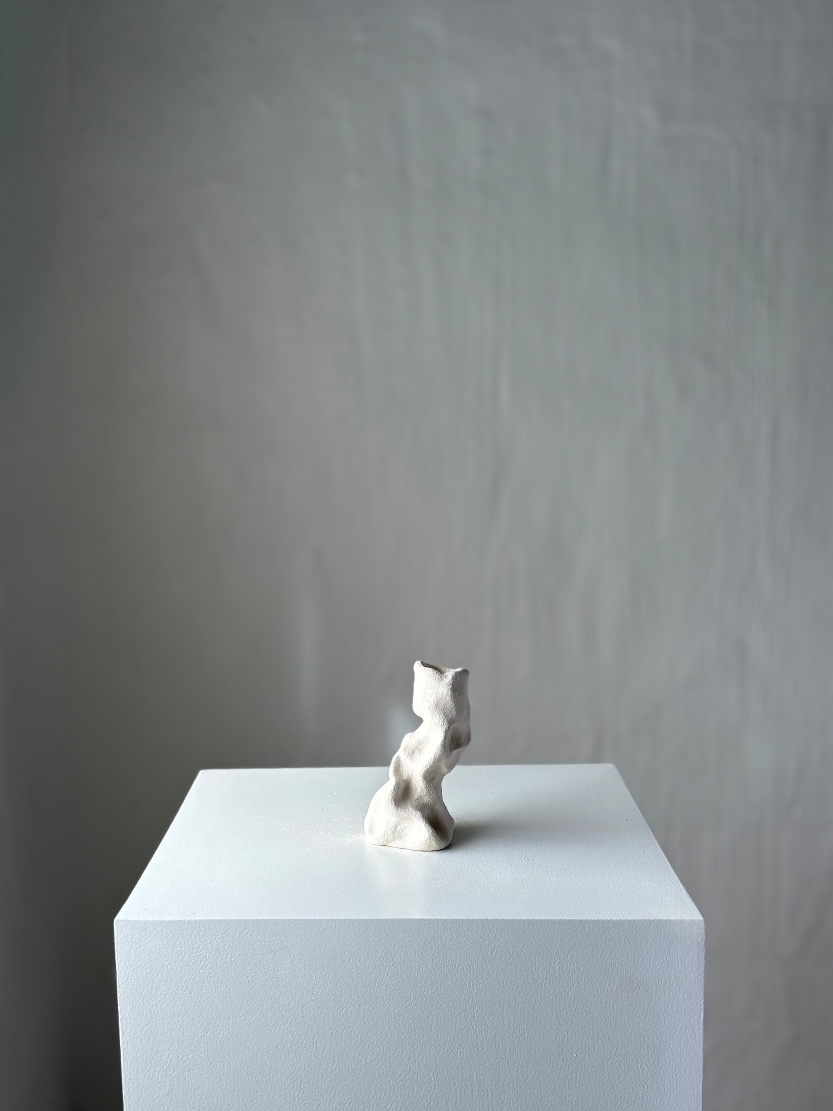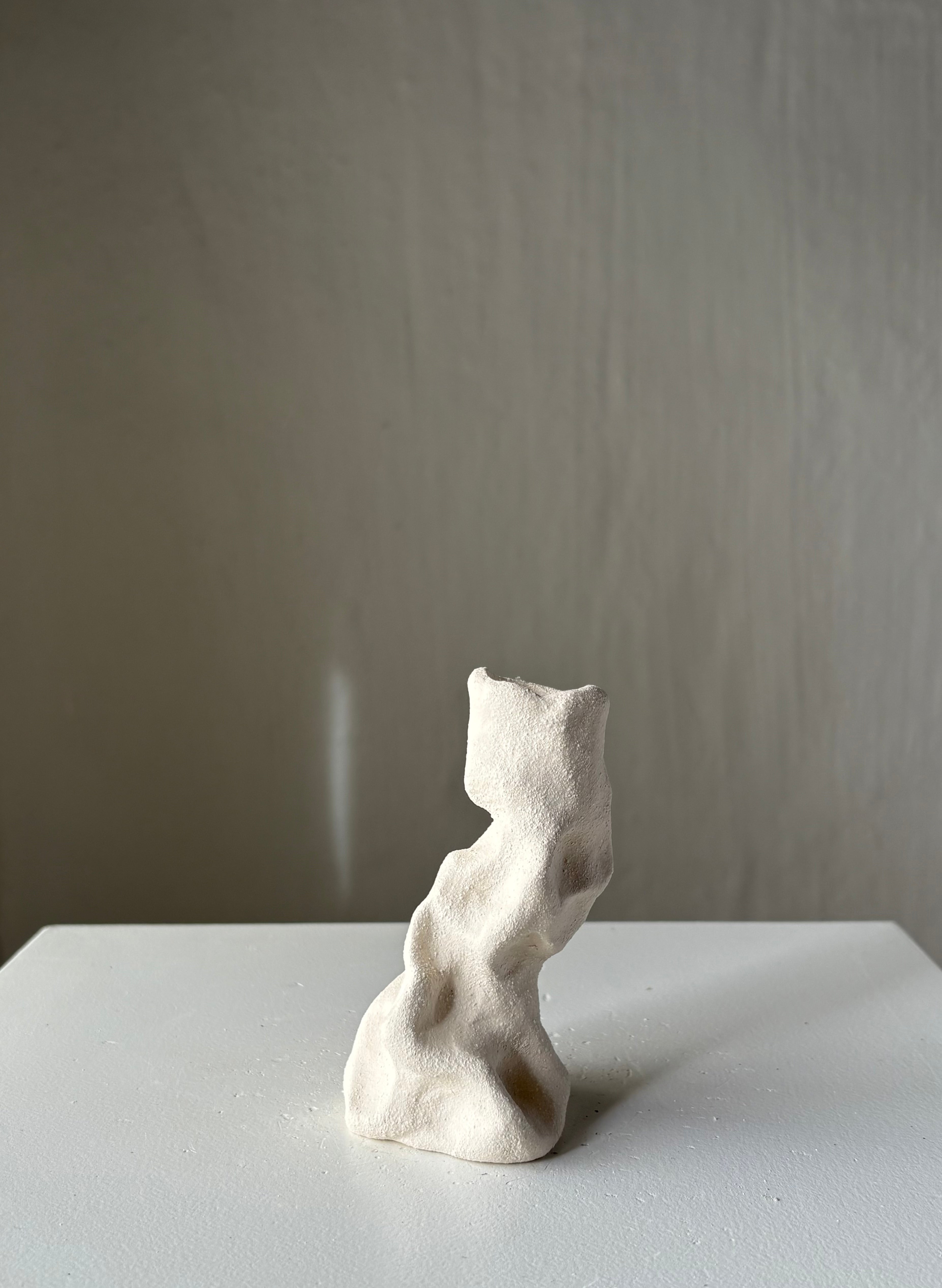 Håndbygget skulpturel unika lysestage i hvidler, af Leela Mette. Stagen er uglaseret hvilket skaber både liv, dybde og tekstur.