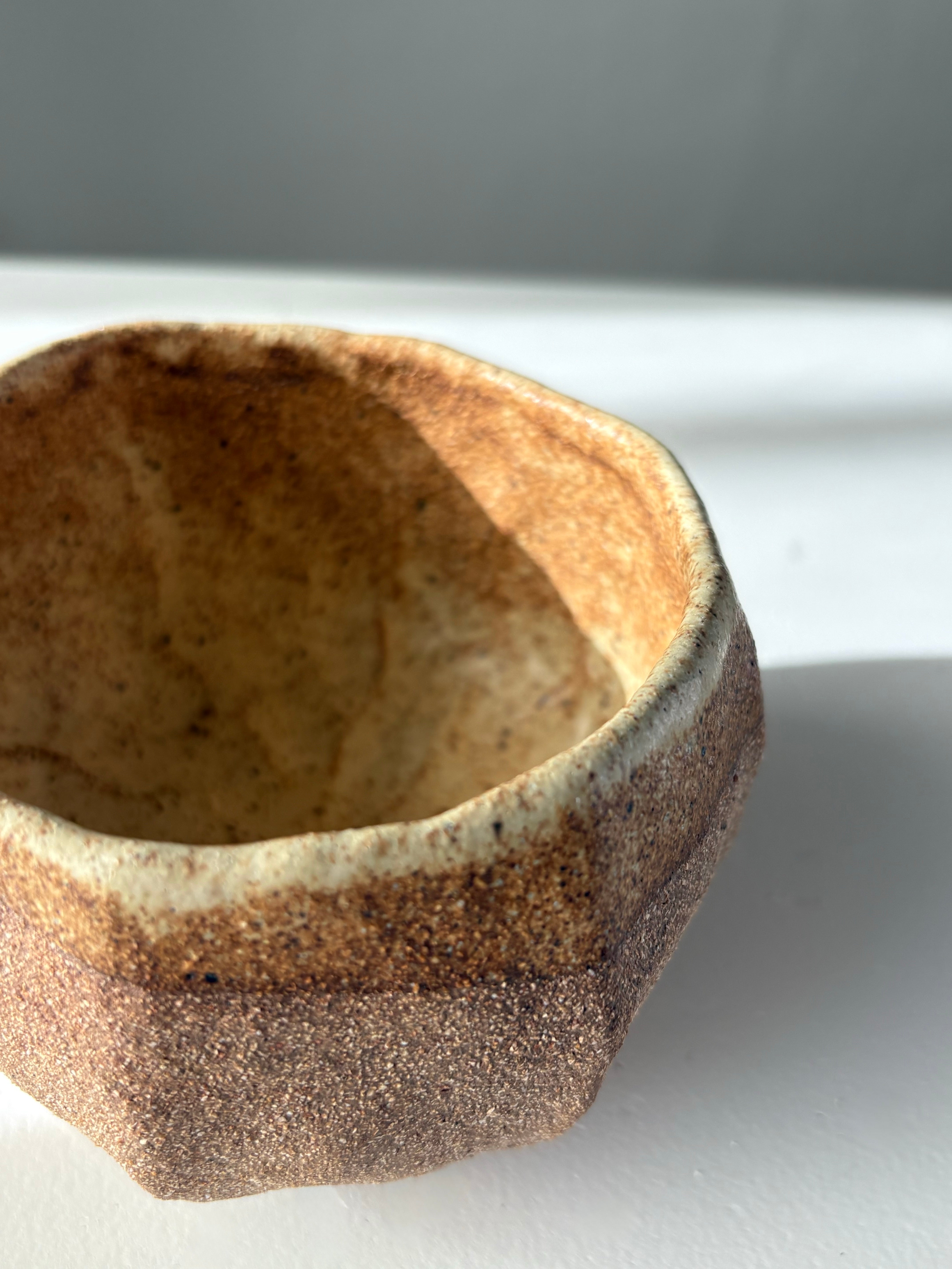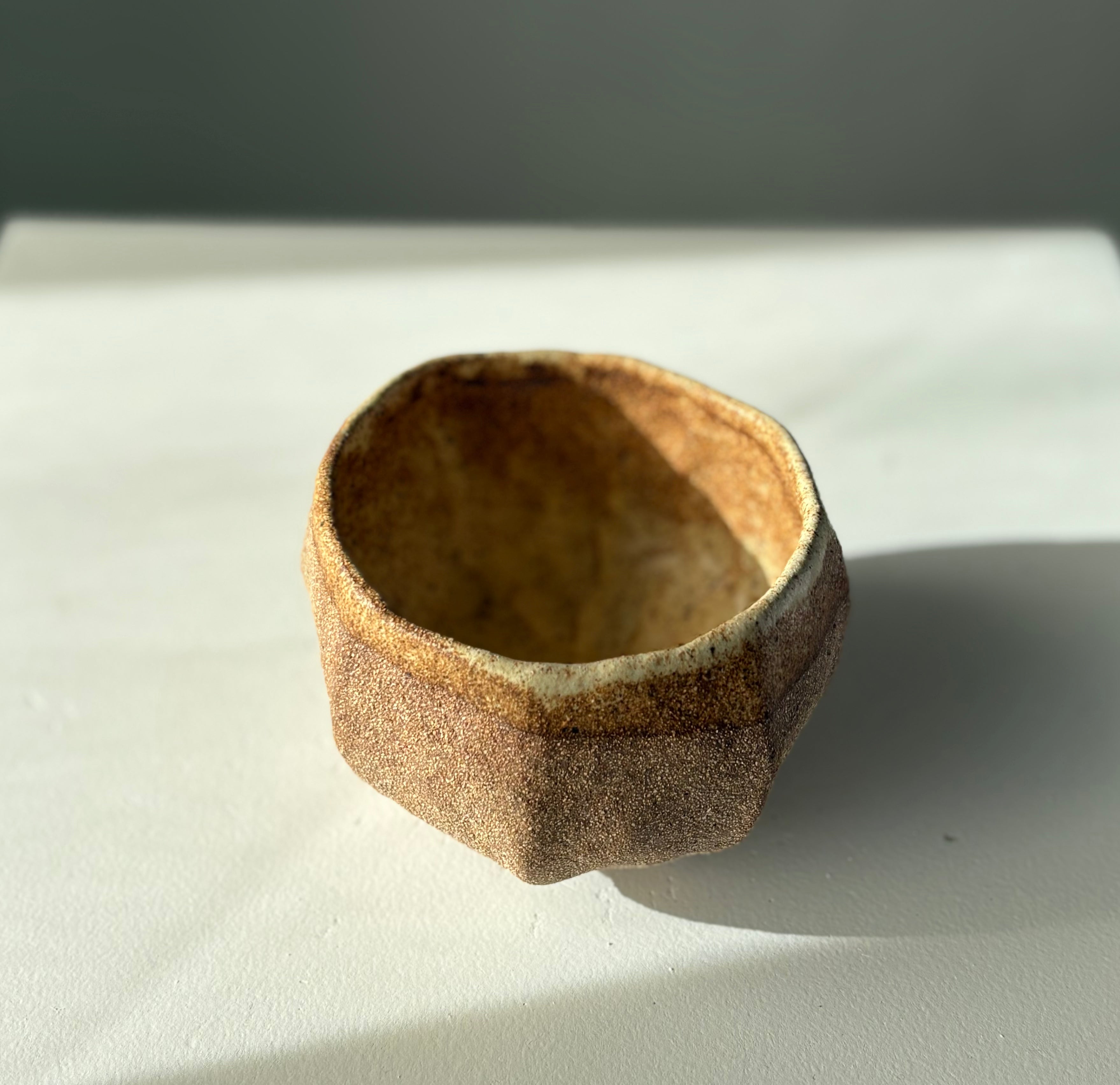 Håndbygget unika kop, af Leela Mette. Den er glaseret i en smuk silkemat glausur der giver en smuk effekt med brunleret.