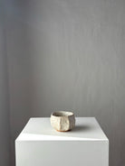 Håndbygget unika kop, af Leela Mette. Den er glaseret i en smuk beige silkemat glausur der giver en smuk effekt med brunleret.
