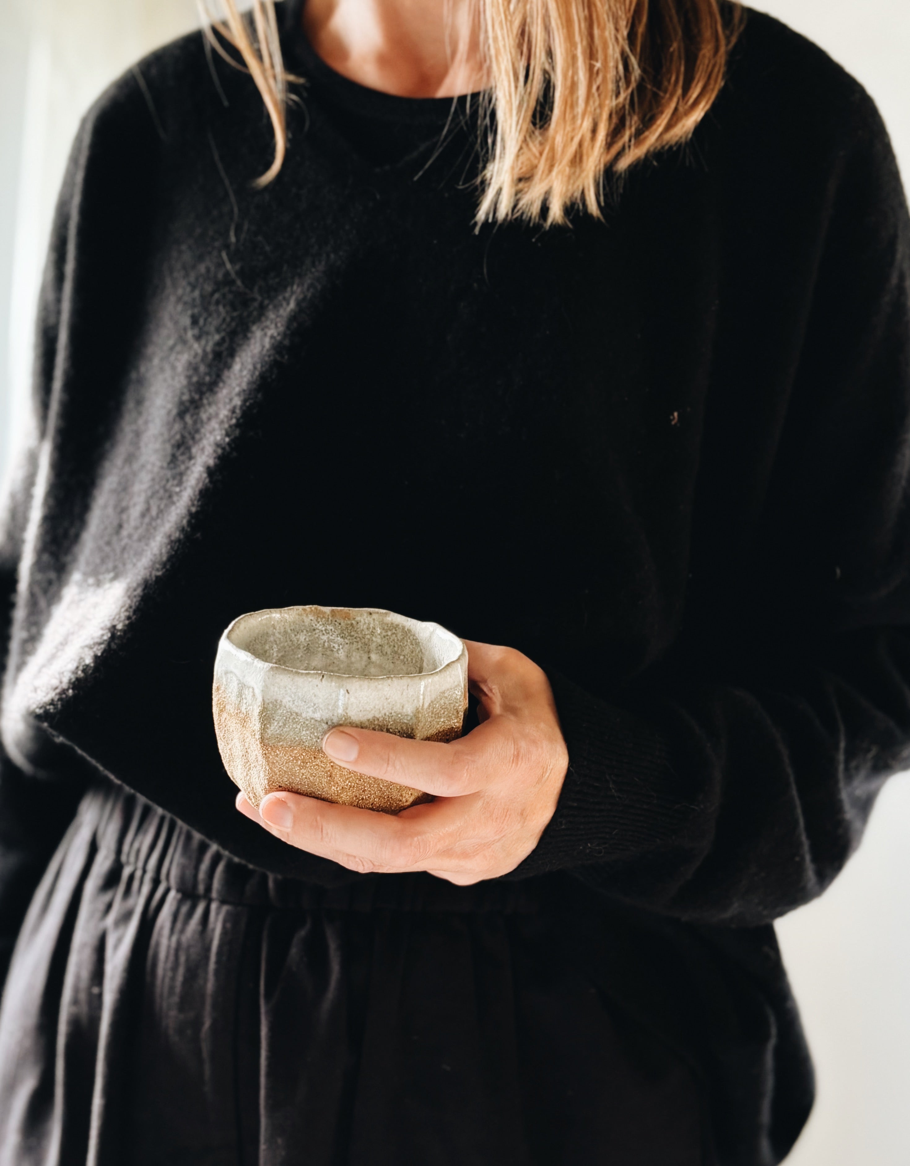 Min tilgang til leret er intuitivt og meditativt. Hver enkelt værk afslører mine hændes aftryk - det vækker dine sanser og bringer nærhed i rummet.