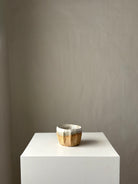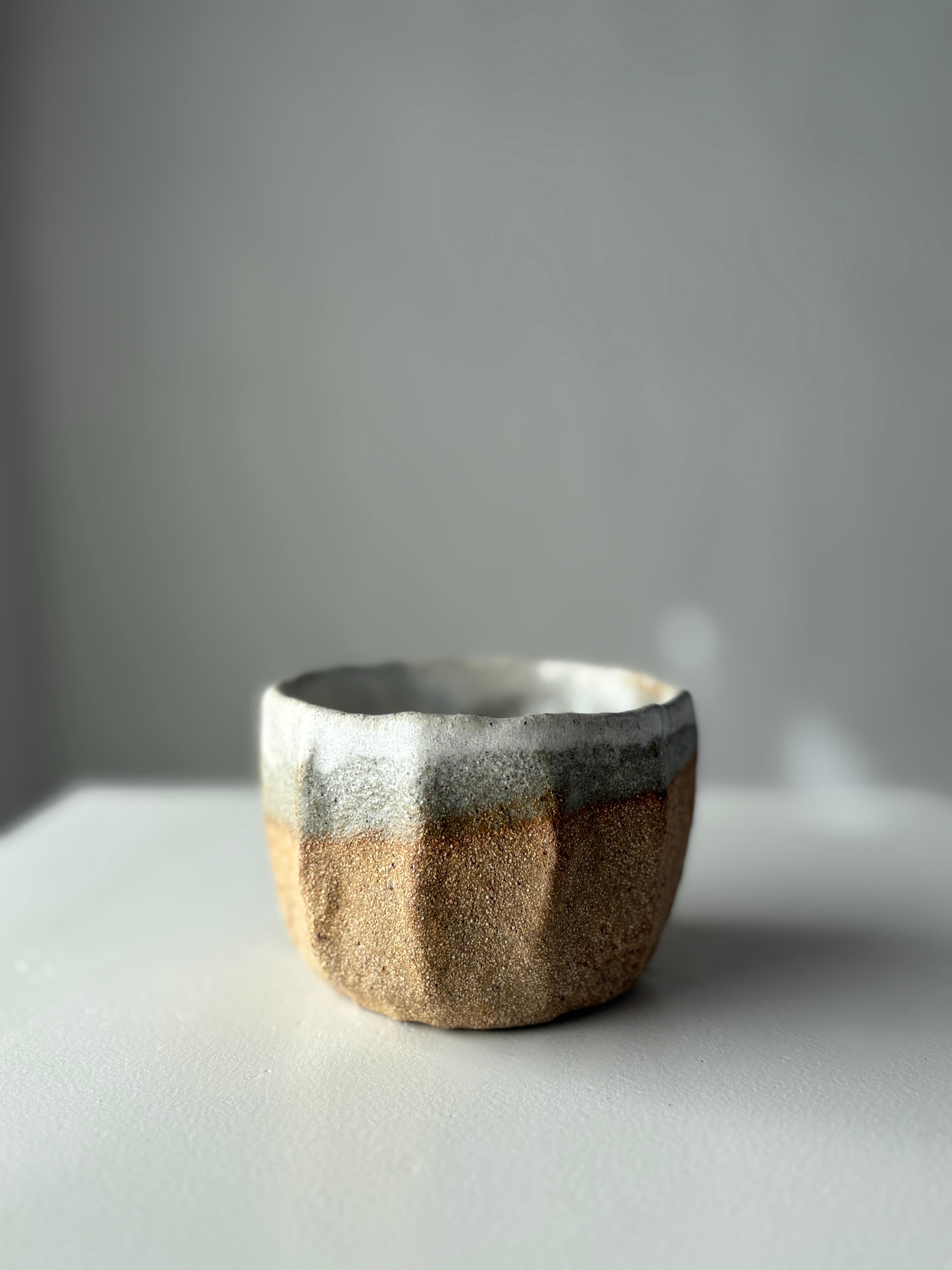 Håndbygget unika kop, af Leela Mette. Den er glaseret i en smuk beige silkemat glausur der giver en smuk effekt med brunleret.