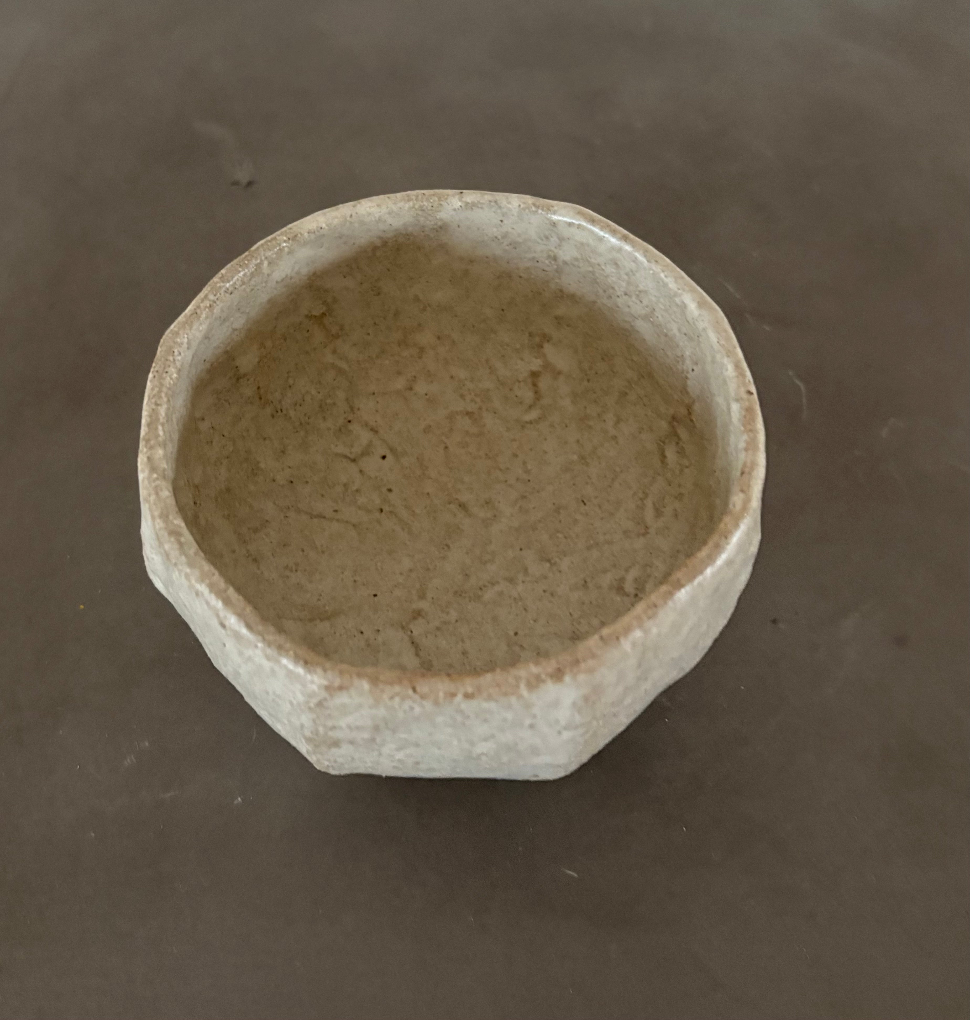 Håndbygget unika kop, af Leela Mette. Den er glaseret i en smuk beige silkemat glausur der giver en smuk effekt med brunleret.