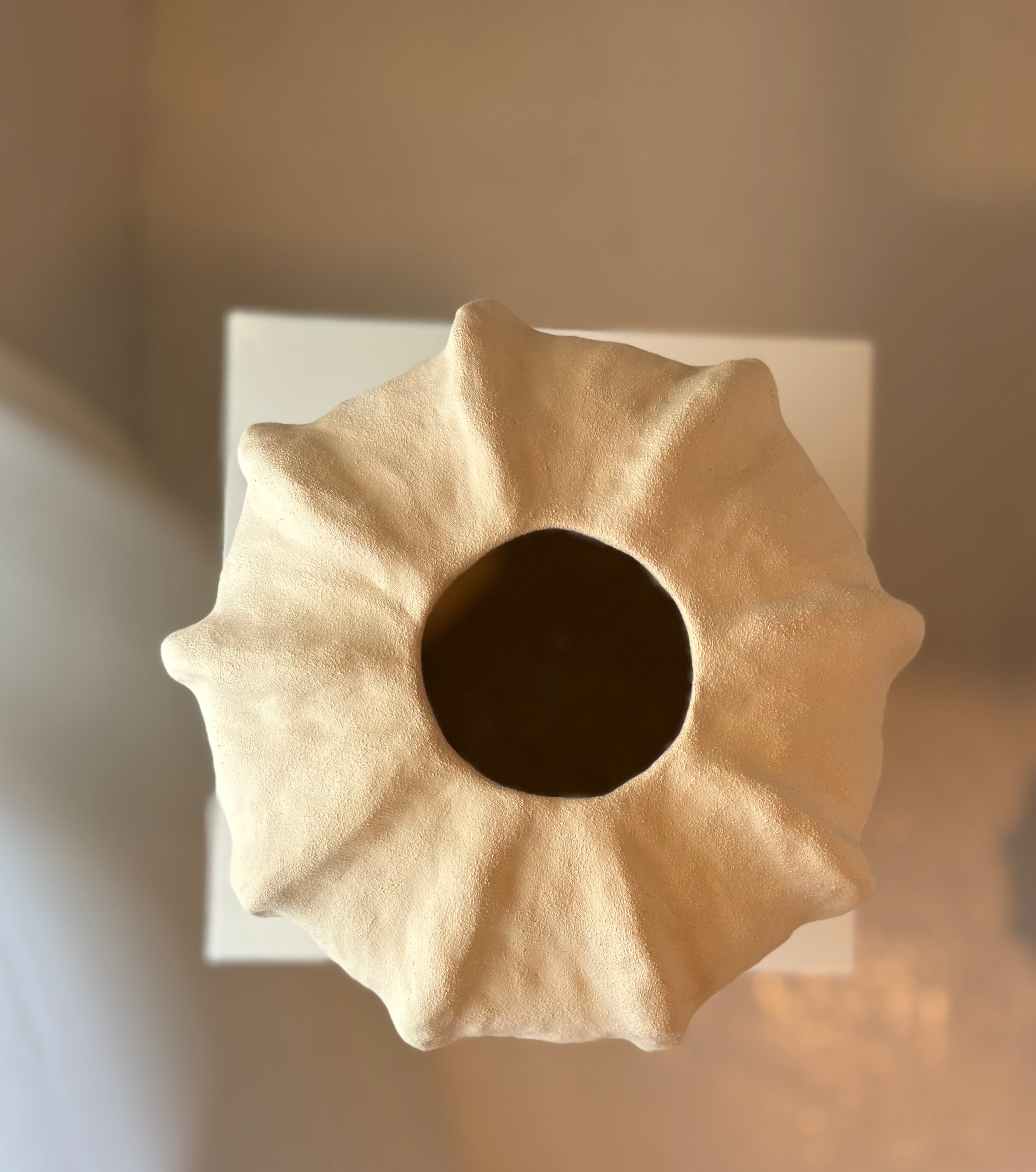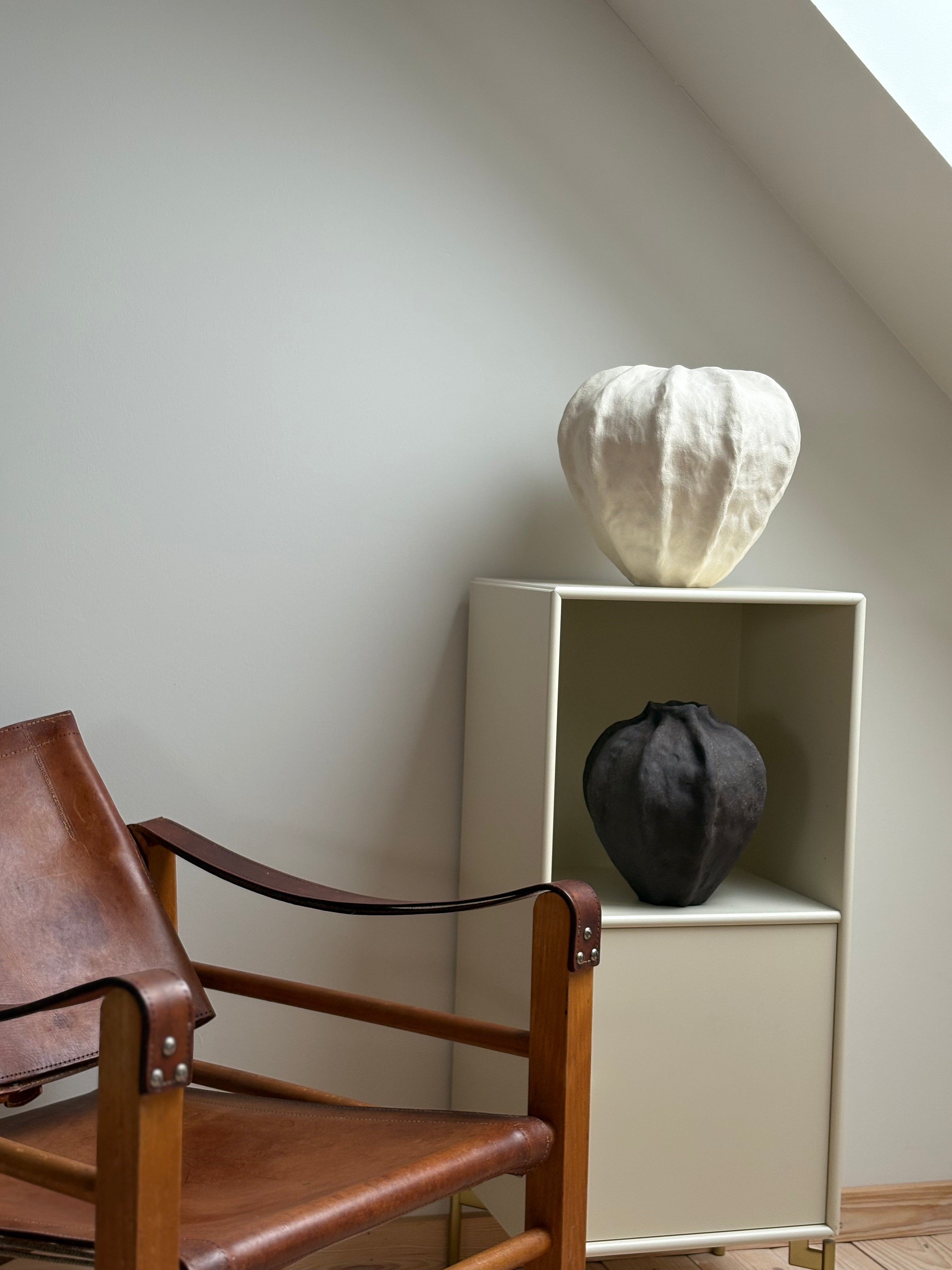 Min tilgang til leret er intuitivt og meditativt. Hver enkelt vase afslører mine hænders aftryk - det vækker dine sanser og bringer nærhed i rummet.