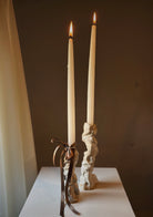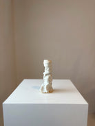 Håndbygget skulpturel unika lysestage, af Leela Mette. Stagen er glaseret i et tyndt lag beige for et smukt samspil med det grove ler.