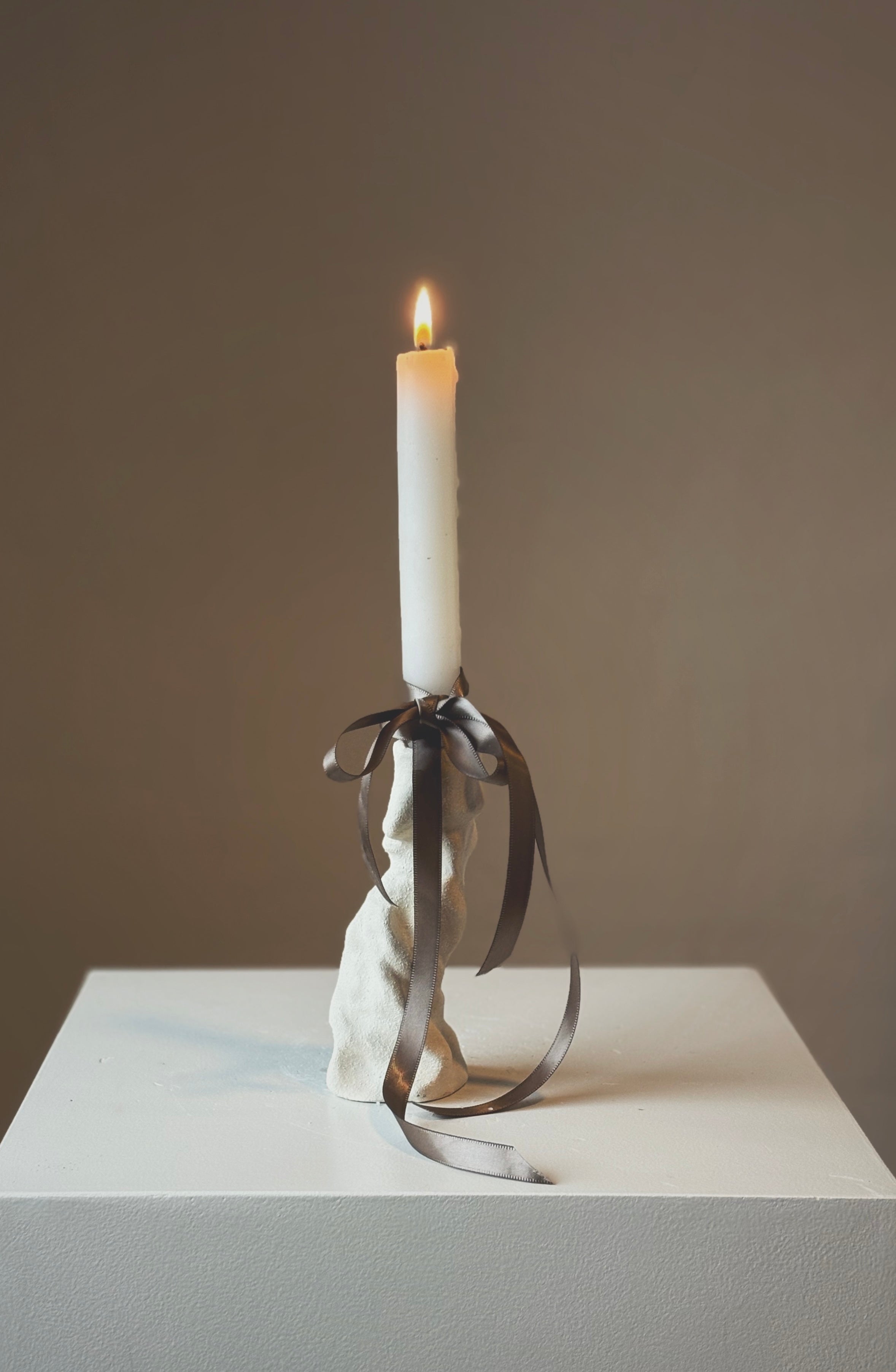 Håndbygget skulpturel unika lysestage i hvidler, af Leela Mette. Stagen er uglaseret hvilket skaber både liv, dybde og tekstur.