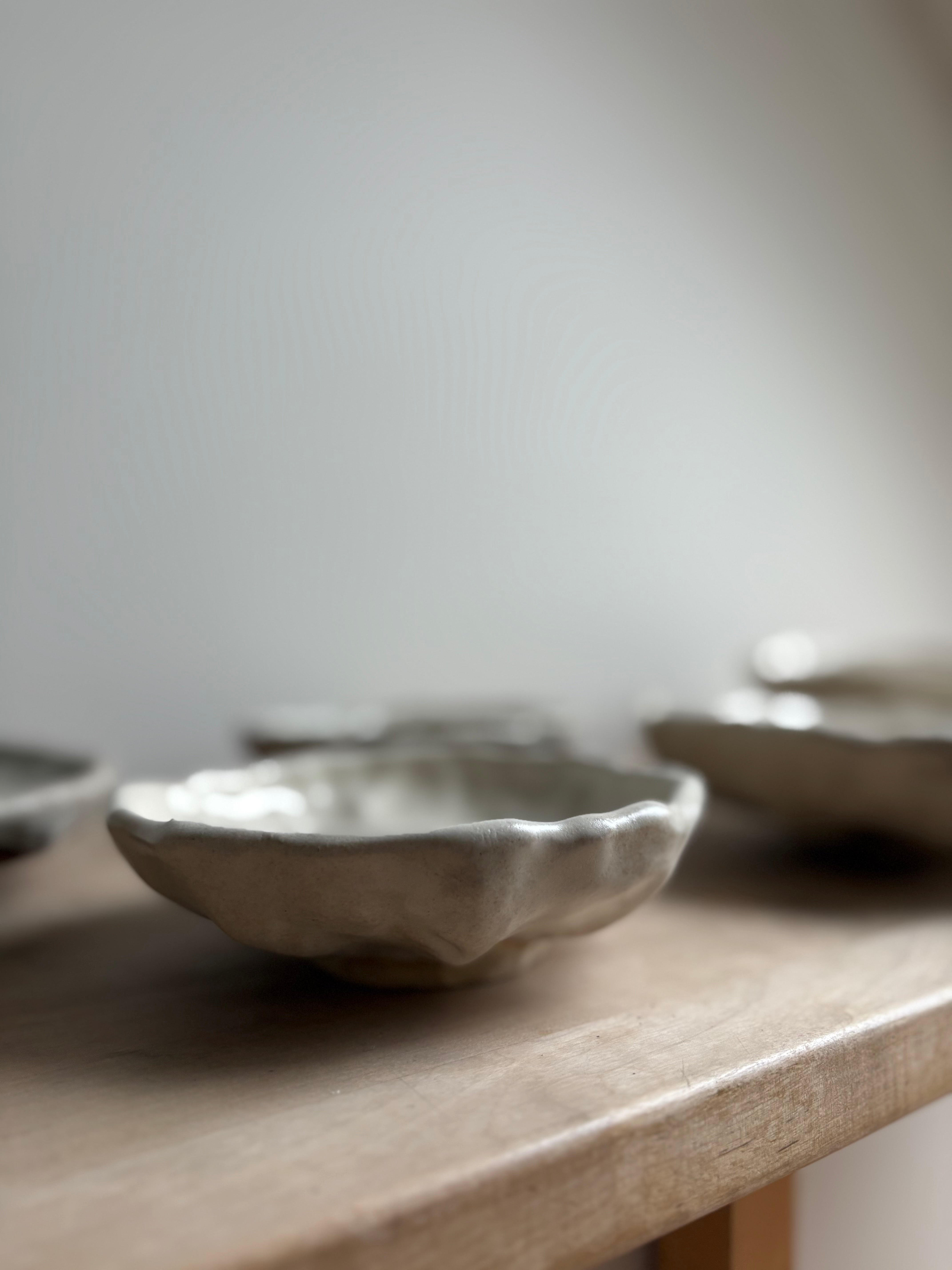 Min tilgang til leret er intuitivt og meditativt. Hver enkelt værk afslører mine hænders aftryk - det vækker dine sanser og bringer nærhed i rummet.