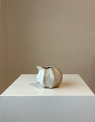 Håndbygget unika mælkekande, af Leela Mette. Den er glaseret i en smuk beige silkemat glausur der giver en varm farve og masser af struktur i sammensmeltningen med den brune ler.