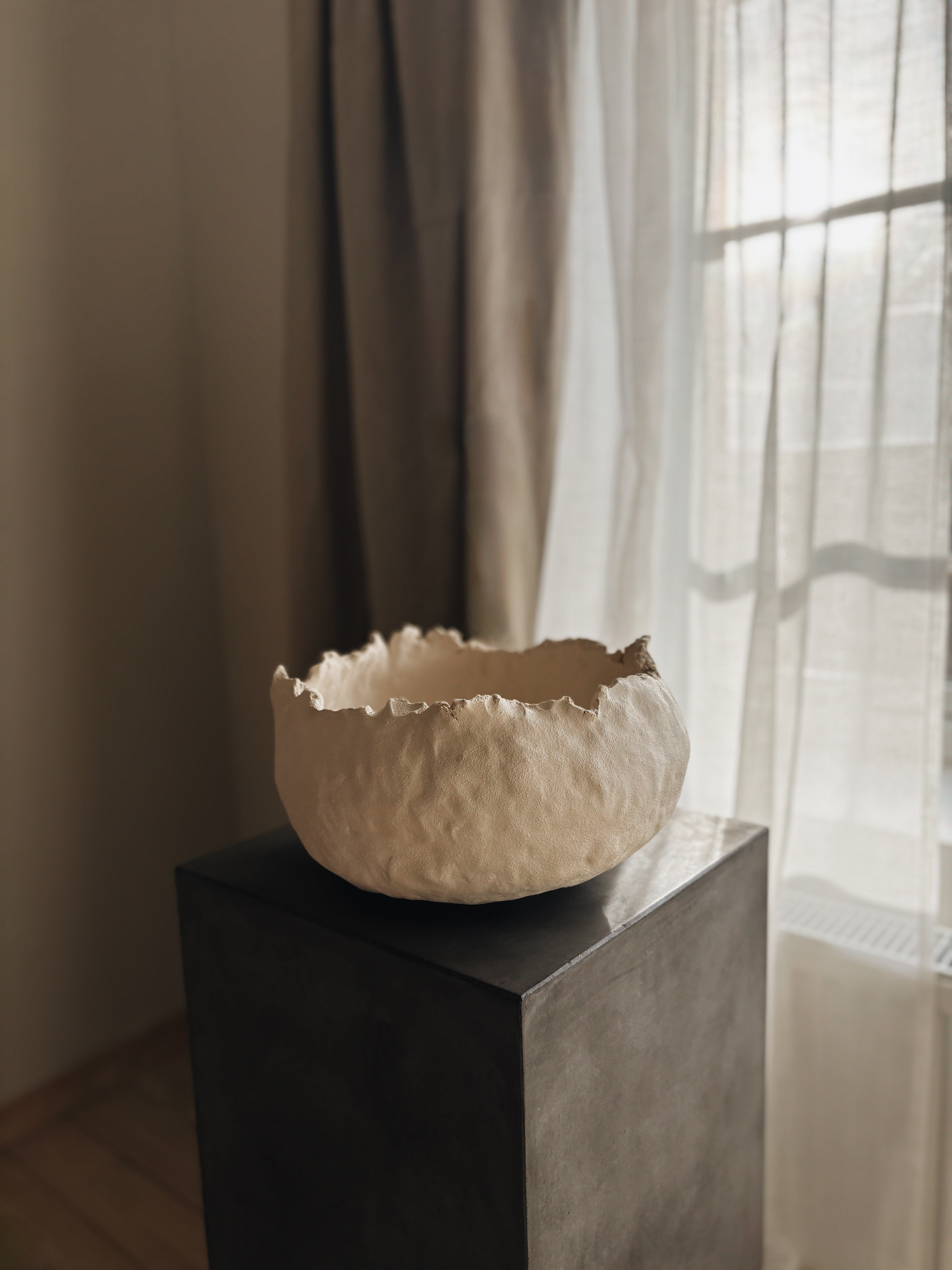 Min tilgang til leret er intuitivt og meditativt. Hver enkelt værk afslører mine hænders aftryk - det vækker dine sanser og bringer nærhed i rummet.