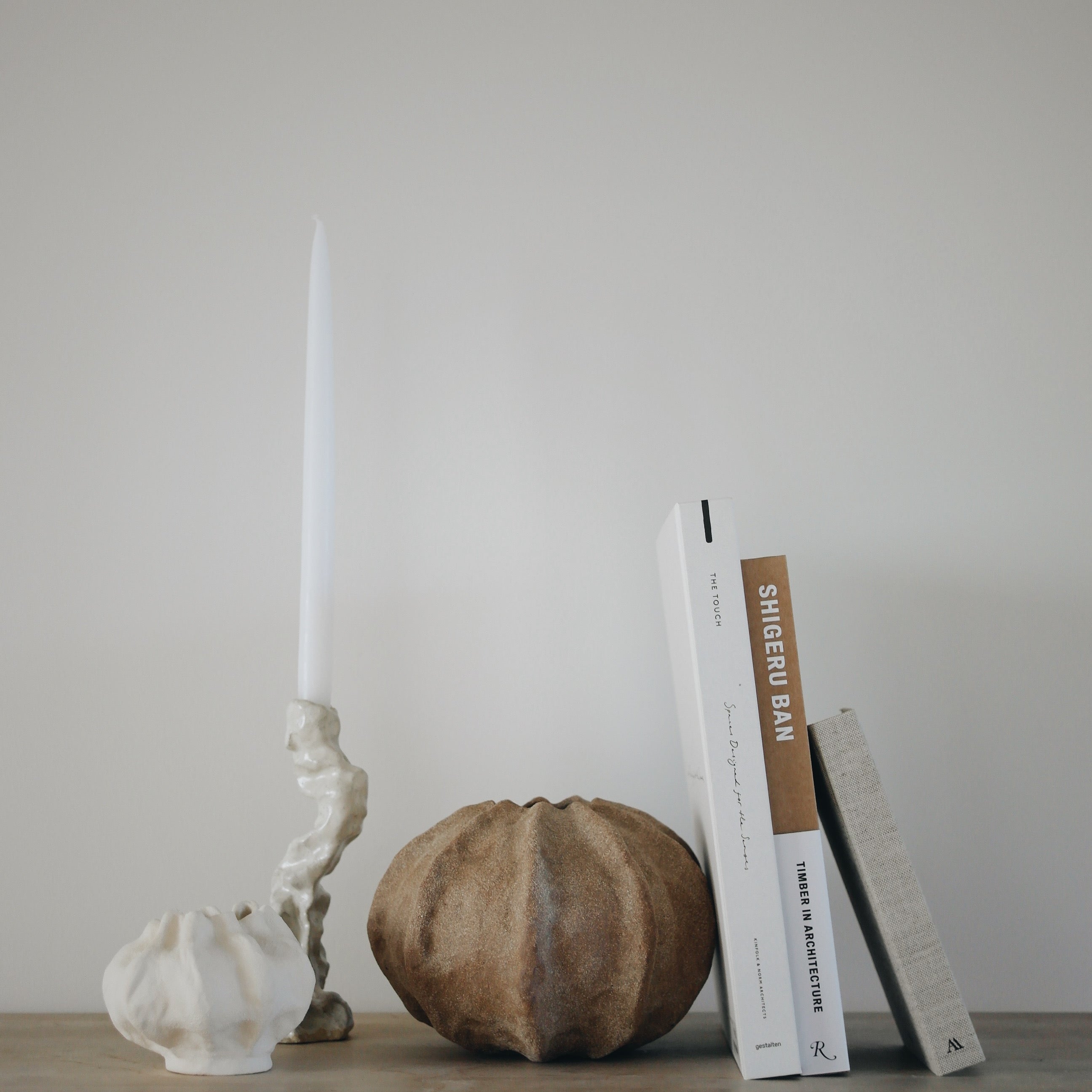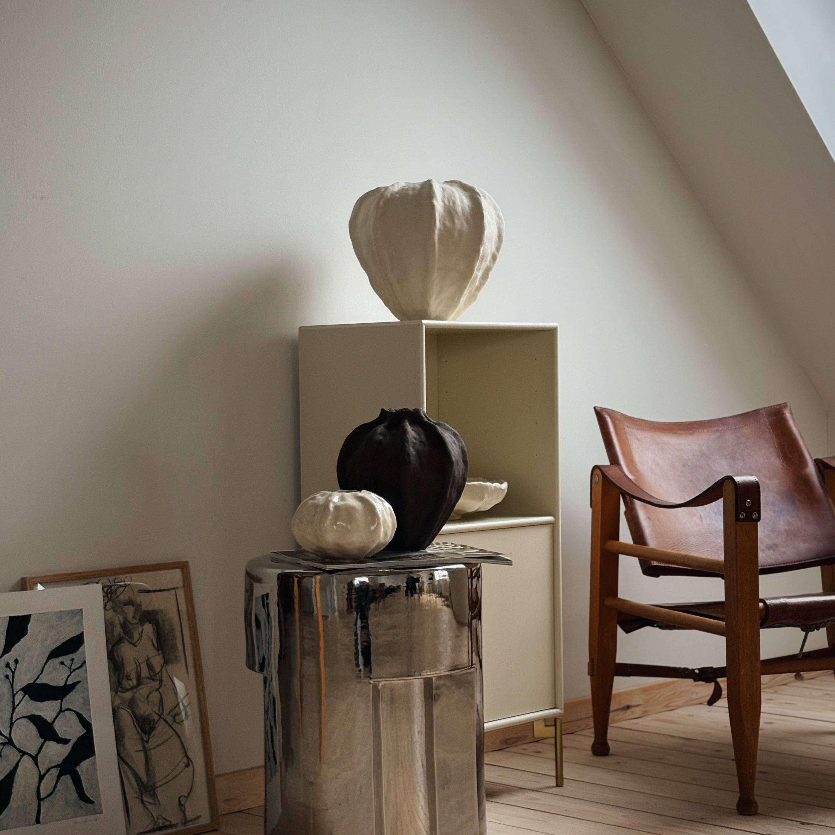 Mine værker er håndbyggede i et intuitivt og meditativt rum. Med taktile overflader og organiske former vækker de sanserne og tilfører rummet en særlig stemning og nærvær.
